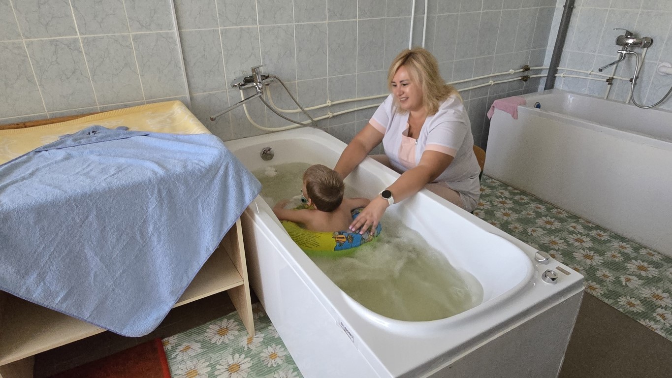 Dort steht das Rehabilitationszentrum für Kinder, früher ein Waisenhaus. Das imposante Gebäude, vor 50 Jahren in sowjetischer Zeit erbaut, liegt am Rand eines Naturparks und ist von einem Garten umgeben, der von einem heißen, trockenen Sommer ausgedörrt ist.